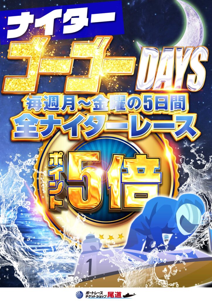 なんと月~金曜のナイターレース対象でポイント5倍!!
